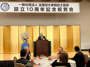 記念講演に引き続き、同会場にて、一般社団法人全国空き家相談士協会「設立10周年記念祝賀会」を開催いたしました。