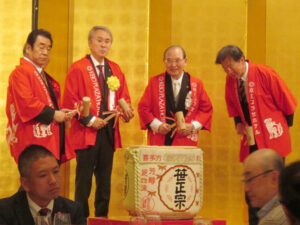 ご来賓の方々に、壇上にお上がりいただき、鏡開きを行いました。